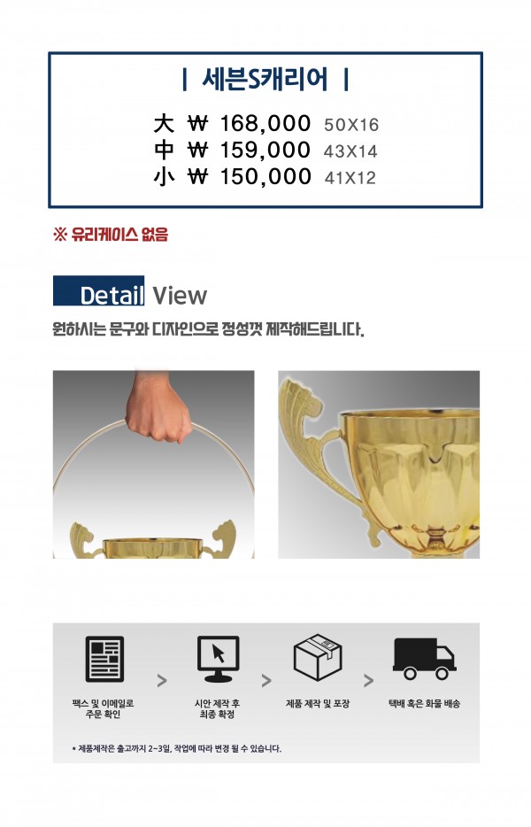우승컵 트로피 세븐S캐리어 (大 16만 8,000원, 中 15만 9,000원, 小 15만) 페이지 정보 작성자 관리자 작성일25-07-18 18:18 조회60회 댓글0건 관련링크 이전글 다음글 목록 본문 이전글 다음글 목록