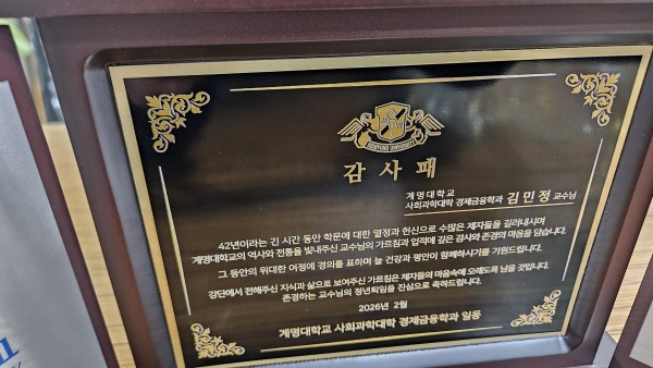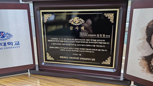 주문제작 계명대학교 사회과학대학 경제금융학과 감사패 페이지 정보 작성자 관리자 작성일26-02-07 12:19 조회19회 댓글0건 관련링크 이전글 다음글 목록 본문 이전글 다음글 목록