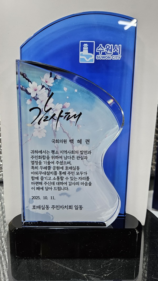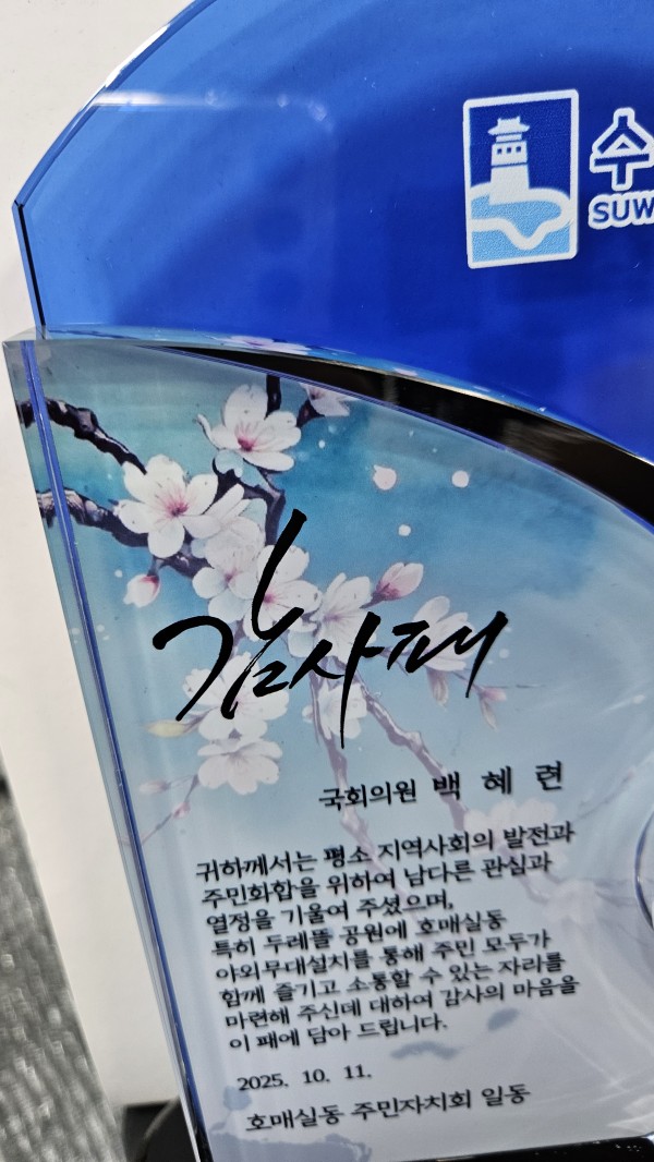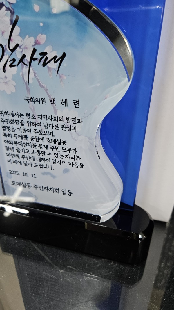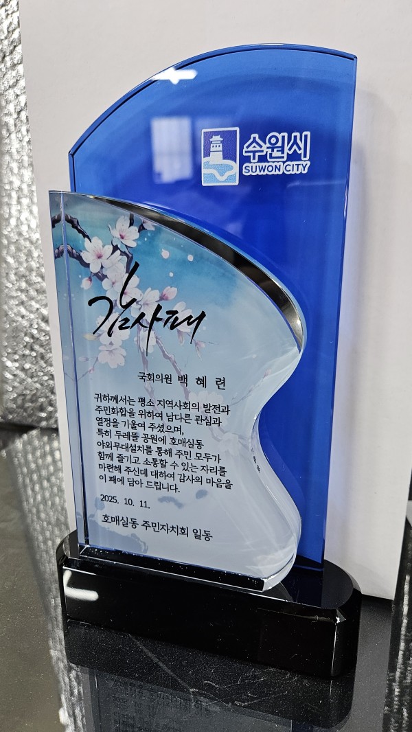주문제작 호매실동 주민자치회 (국회의원 백혜련) 감사패 페이지 정보 작성자 관리자 작성일26-02-07 14:31 조회23회 댓글0건 관련링크 이전글 다음글 목록 본문 이전글 다음글 목록